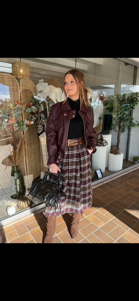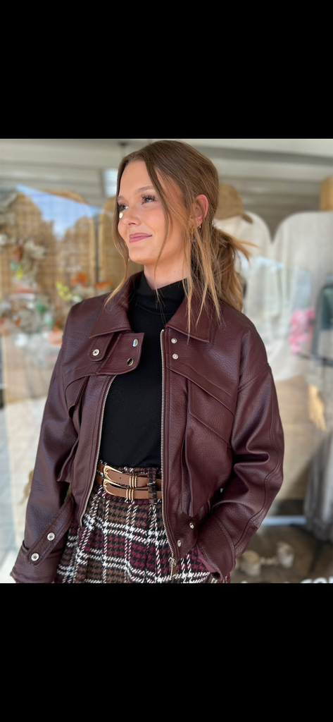 Bomber en similicuir disponible en couleur chocolat ou bordeaux